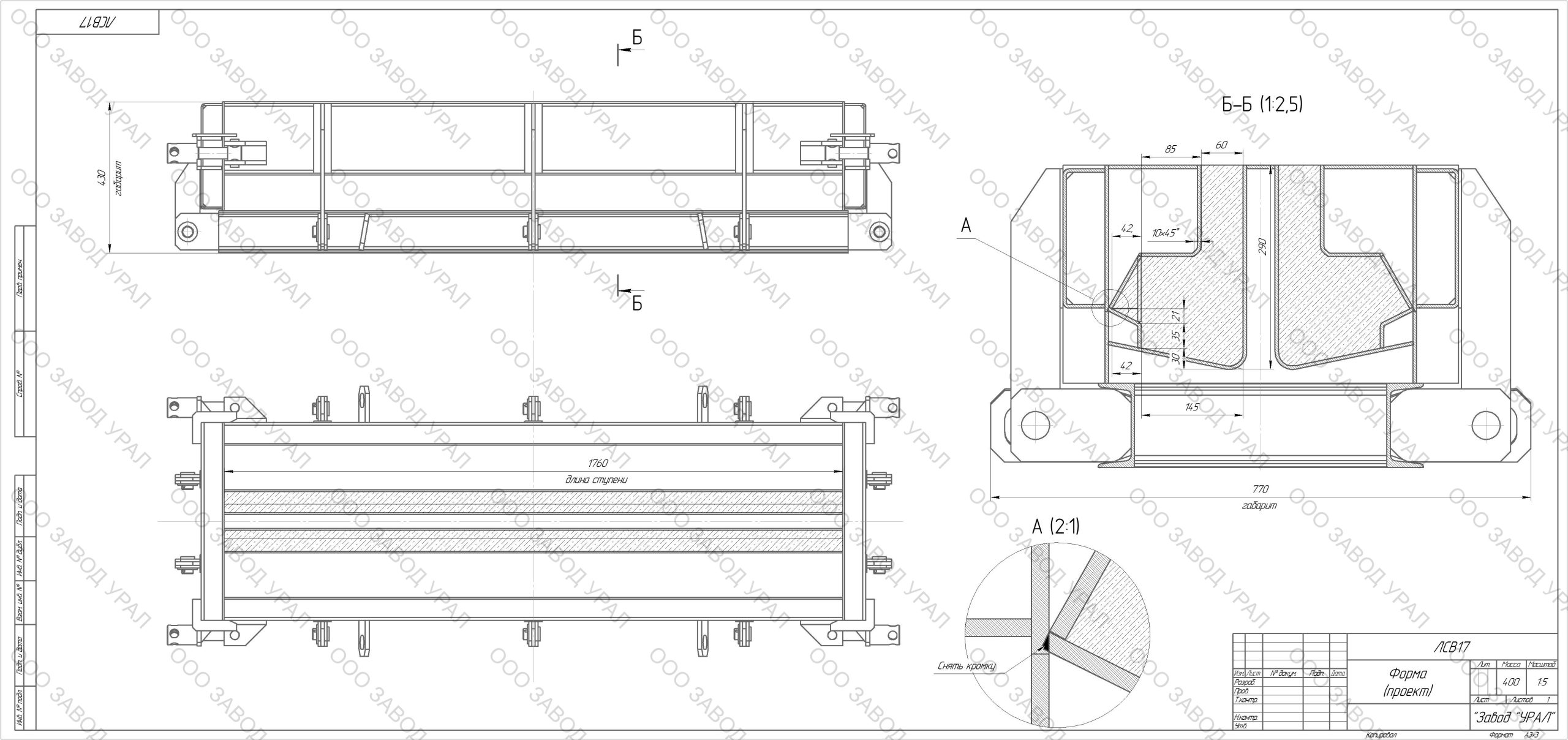 Завод Урал также изготавливает ЖБИ формы по индивидуальным параметрам заказчика. Стандартное оборудование не всегда подходит для поставленных целей. Наши профессионалы помогут составить чертежи под конкретные задачи и изготовят оборудование в короткие сроки.