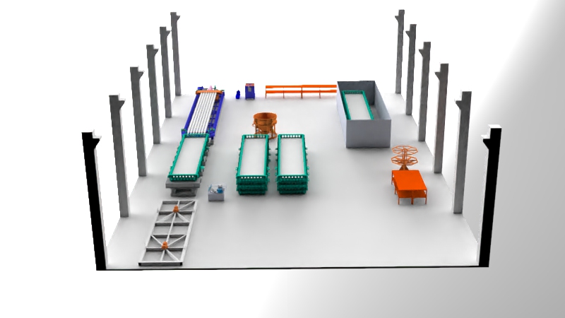 Технологическая линия по производству пустотных плит используется для серийного изготовления многопустотных плит перекрытий из железобетона методом виброформования в металлоформах, произведенных согласно действующего в Российской Федерации ГОСТа.